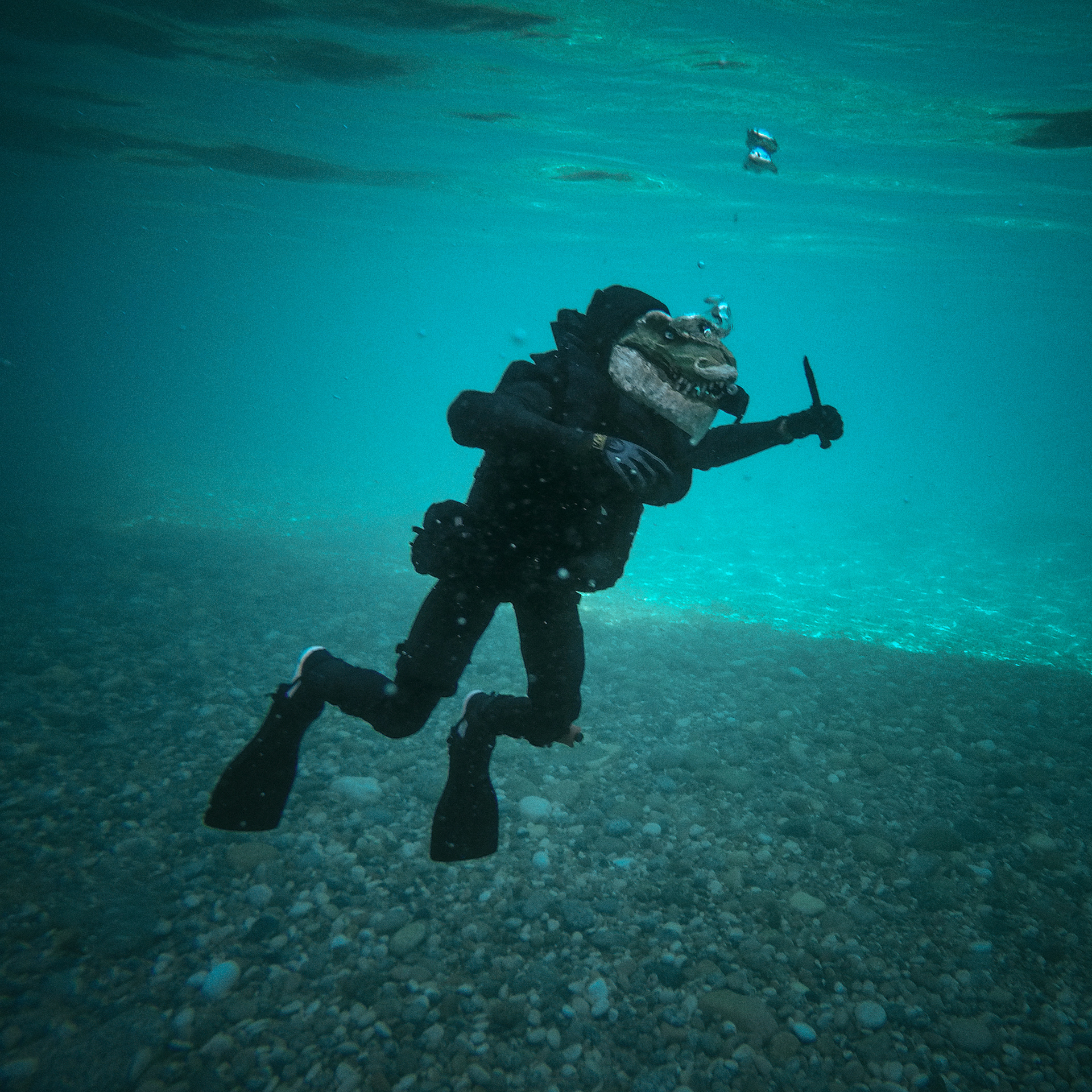 Wet Insertion A Tyrannosaurus Water Assault Team diver in action. Using water for cover, he is able to penetrate deep behind enemy lines.